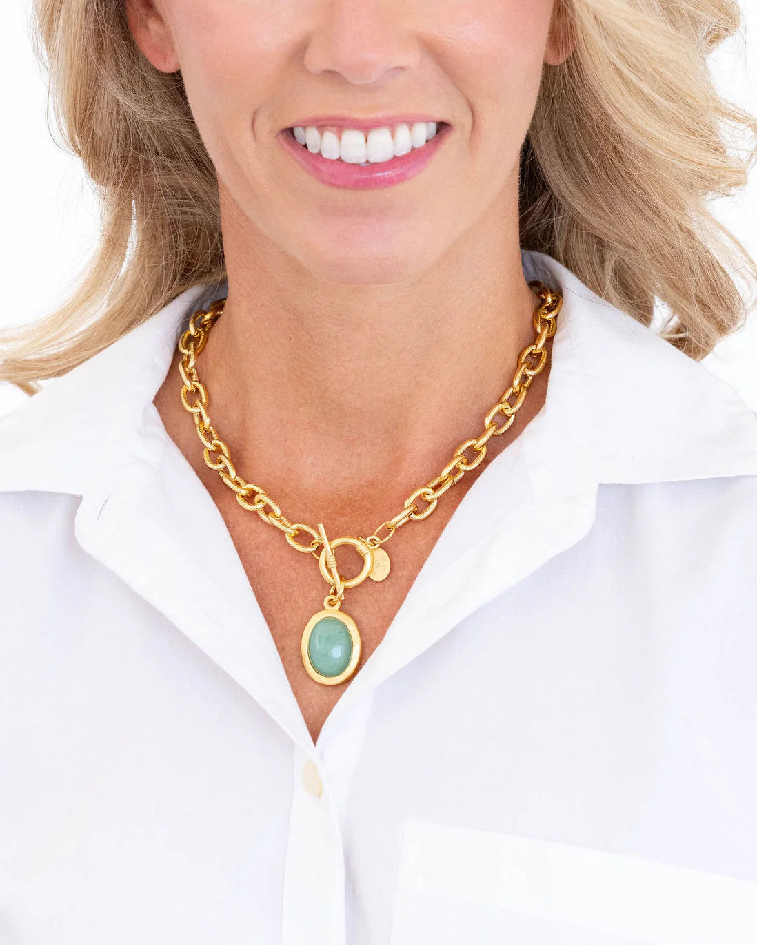 The Jade Toggle Necklace features a richly-colored cabochon, framed by a 24K triple-plated gold setting on our best-selling toggle style. This necklace is the best of both worlds: bold yet versatile, classic yet on-trend.