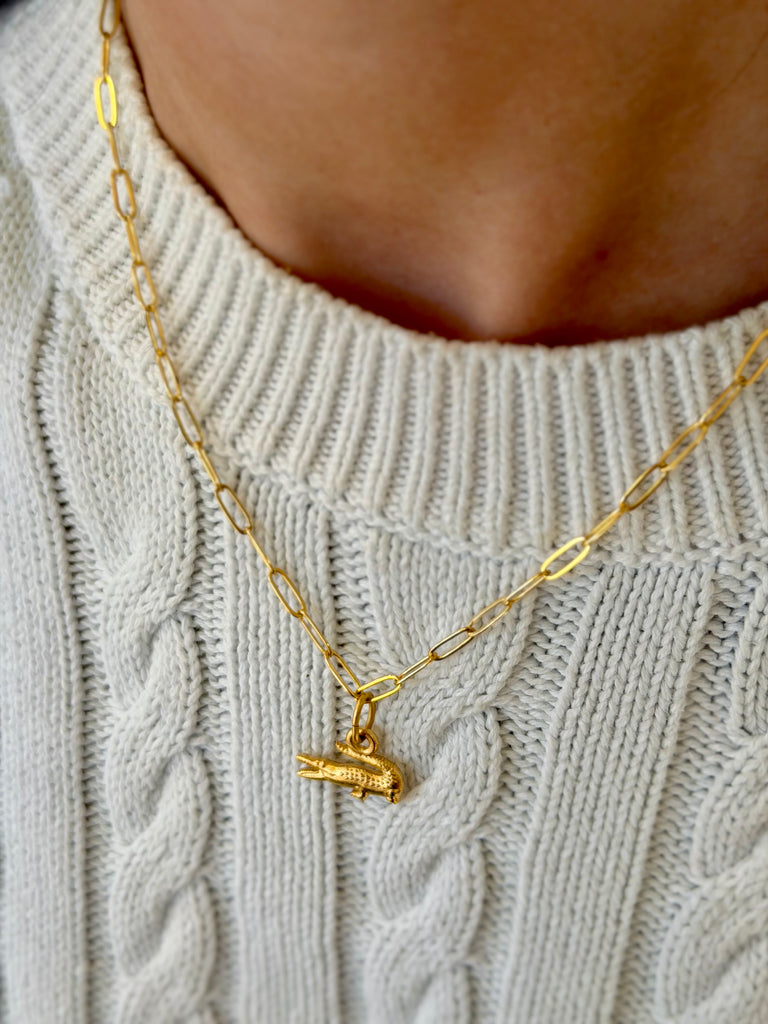 From the marshes of South Carolina to Florida and beyond, few things are as emblematic of the American Southeast as the alligator. These quietly powerful creatures are an icon in the natural world for their grace and primal beauty. With meticulous detail and three-dimensional elements, the Small Alligator Paperclip Necklace from Susan Shaw Jewelry will serve as a spirited addition to your Susan Shaw collection.