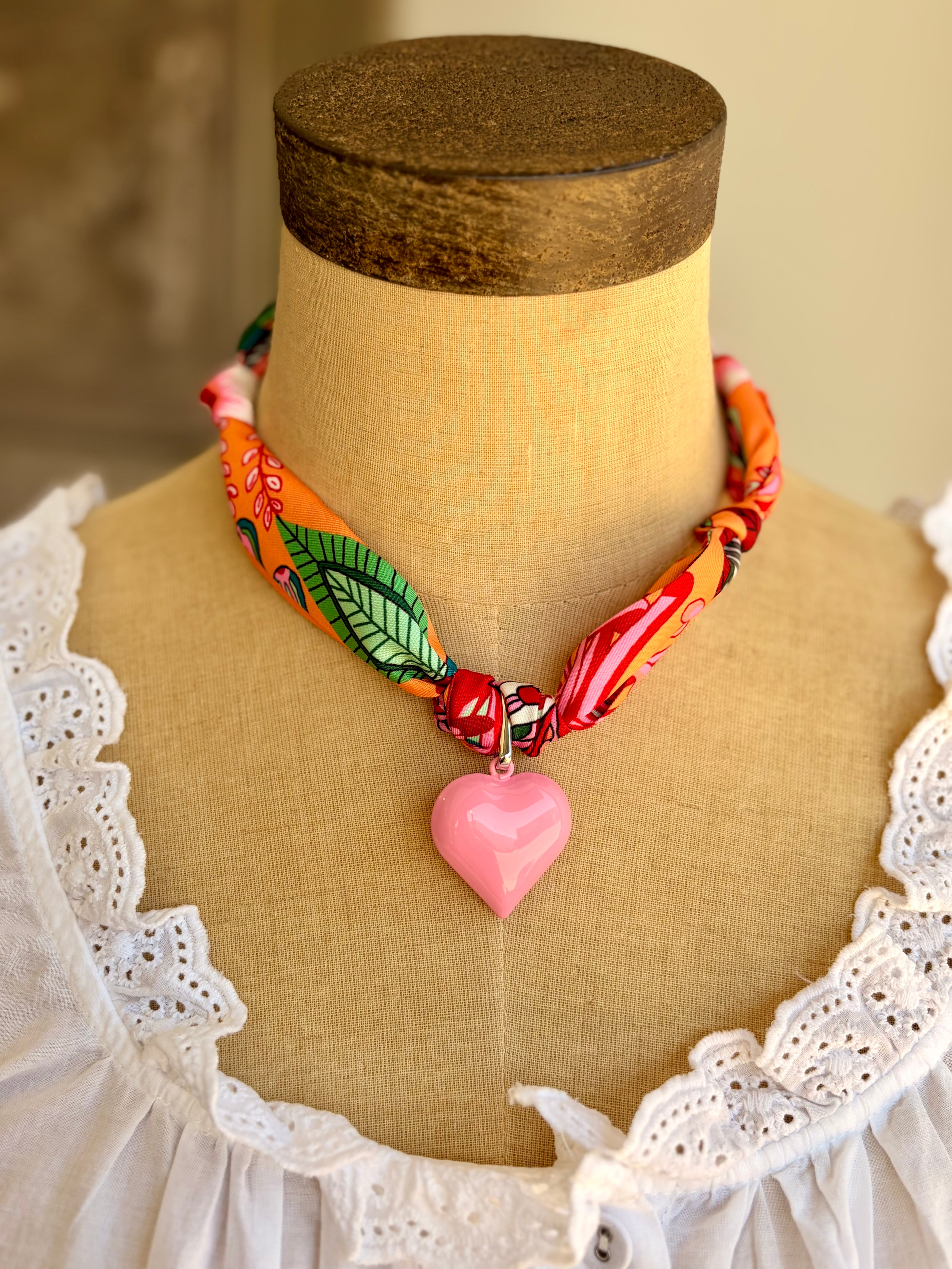 Pink Puff Heart Scarf Necklace
