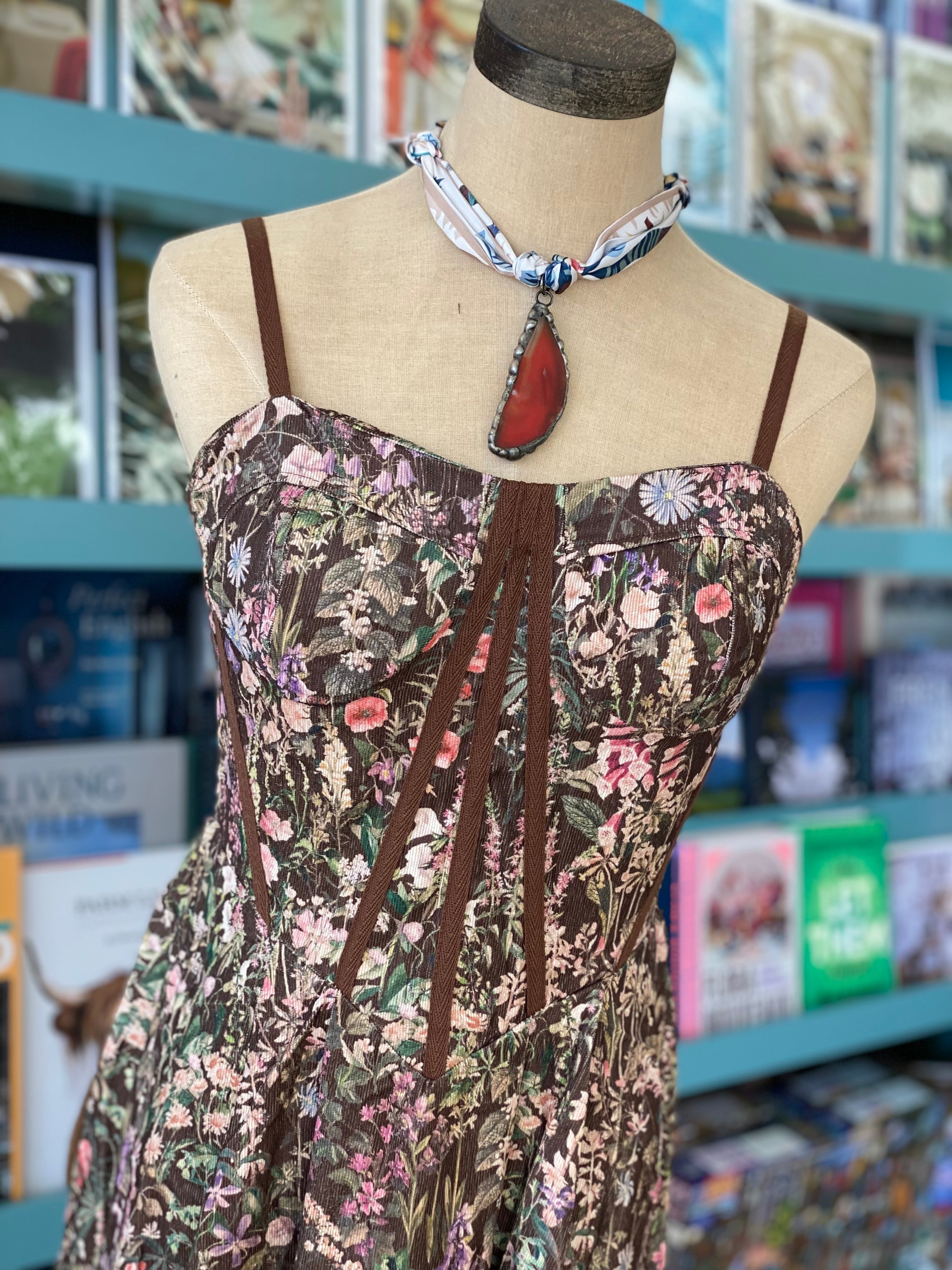 A timeless beauty with a touch of bohemian romance — this floral corduroy midi dress is soft, feminine, and effortlessly chic. Made from lightweight corduroy, it features a flattering fitted bodice with delicate piping details, adjustable straps, and a flowing skirt that moves beautifully with every step. The subtle texture adds depth to its botanical print, making it perfect for both everyday wear and special occasions.