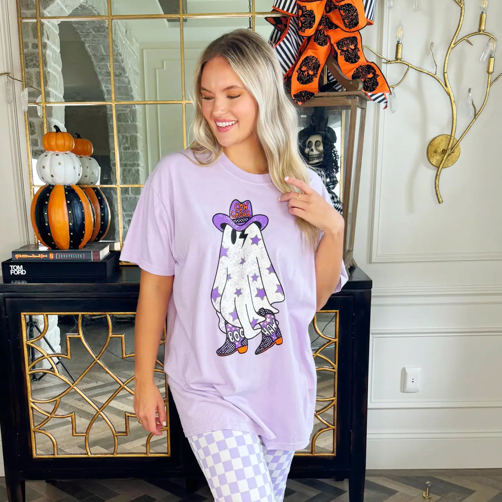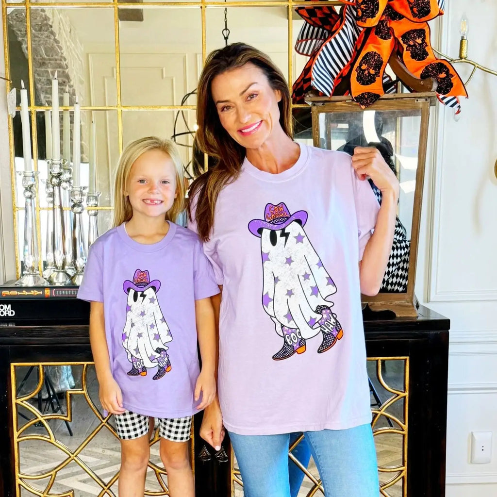 Available in adult and kids sizes! Saddle up for this spooky-cute western-style tee featuring a friendly, figurative Cowboy Ghost. It’s just the right fit for spook-tacular occasions. Make like a ghost and get yours now! 100% Cotton.
