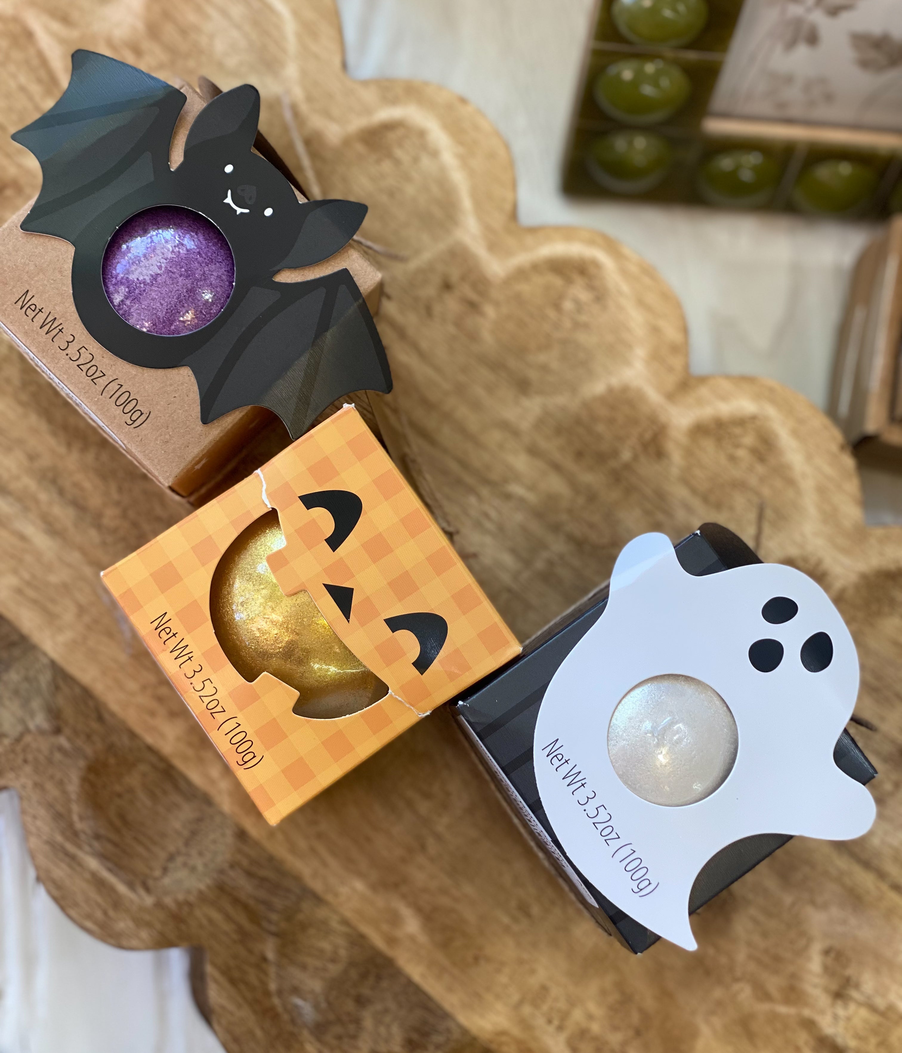 Treat yourself to a spook-tacular soak! These Halloween-inspired bath bombs are handcrafted with skin-loving ingredients and festive fragrances that make bath time extra fun. Each one fizzes and bubbles as it releases vibrant colors and cozy fall scents - perfect for kids and grown ups ghouls alike!