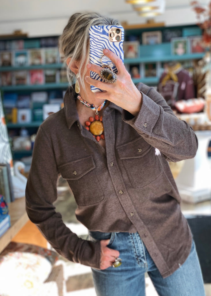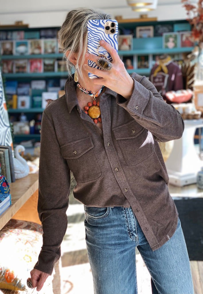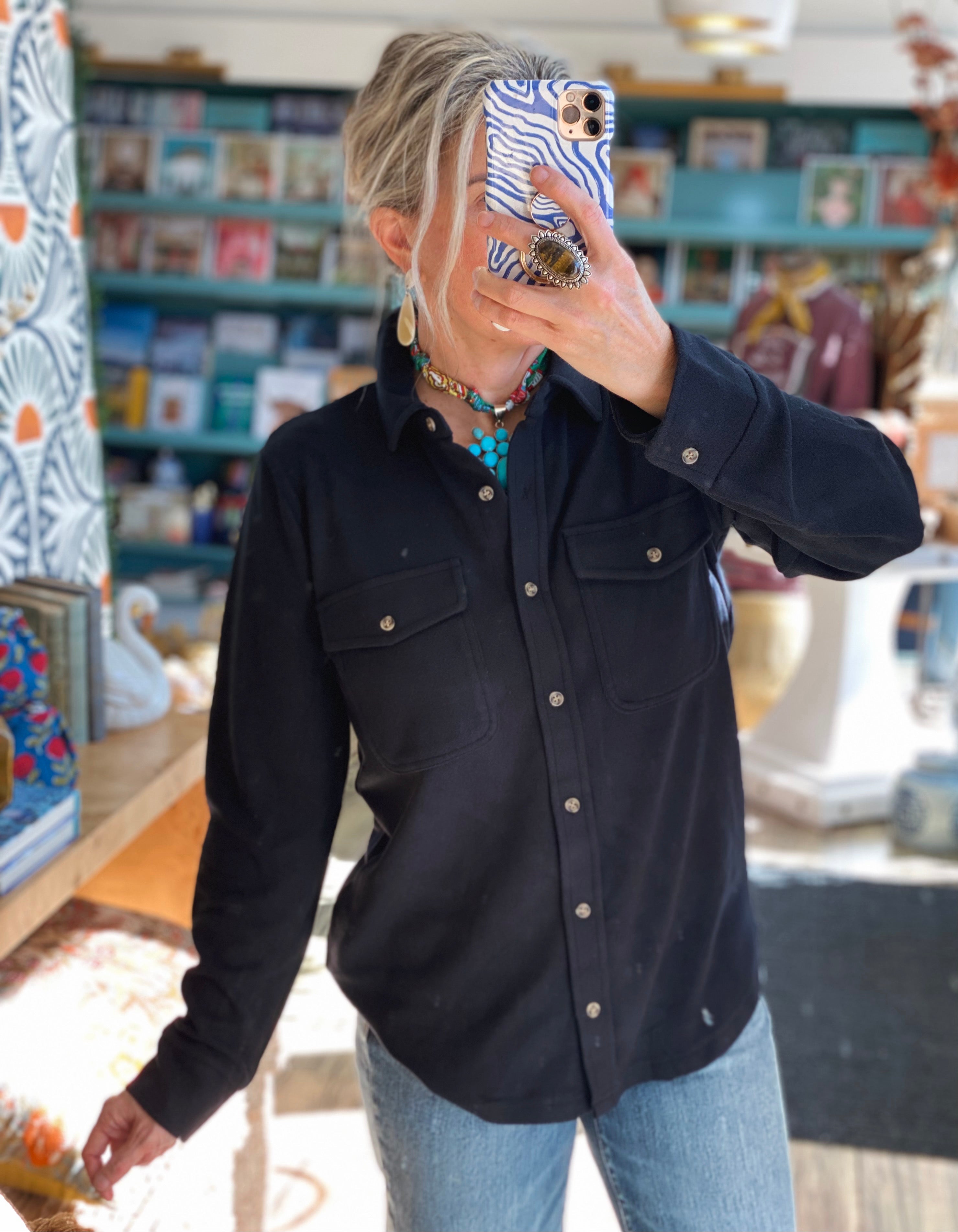 Meet your new favorite button up from Thread & Supply! Featuring dual patch pockets, a flattering shirt tail hem, so-soft fabrication and button front closure.