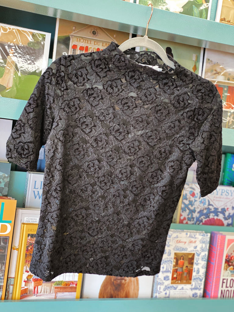 Romantic and refined, this mock neck lace top adds an elegant touch to any look. Crafted from a soft stretch lace with a delicate floral pattern, it’s semi-sheer with half sleeves and a flattering straight fit. Perfect for layering under blazers, cardigans, or paired with denim for a chic contrast of textures.