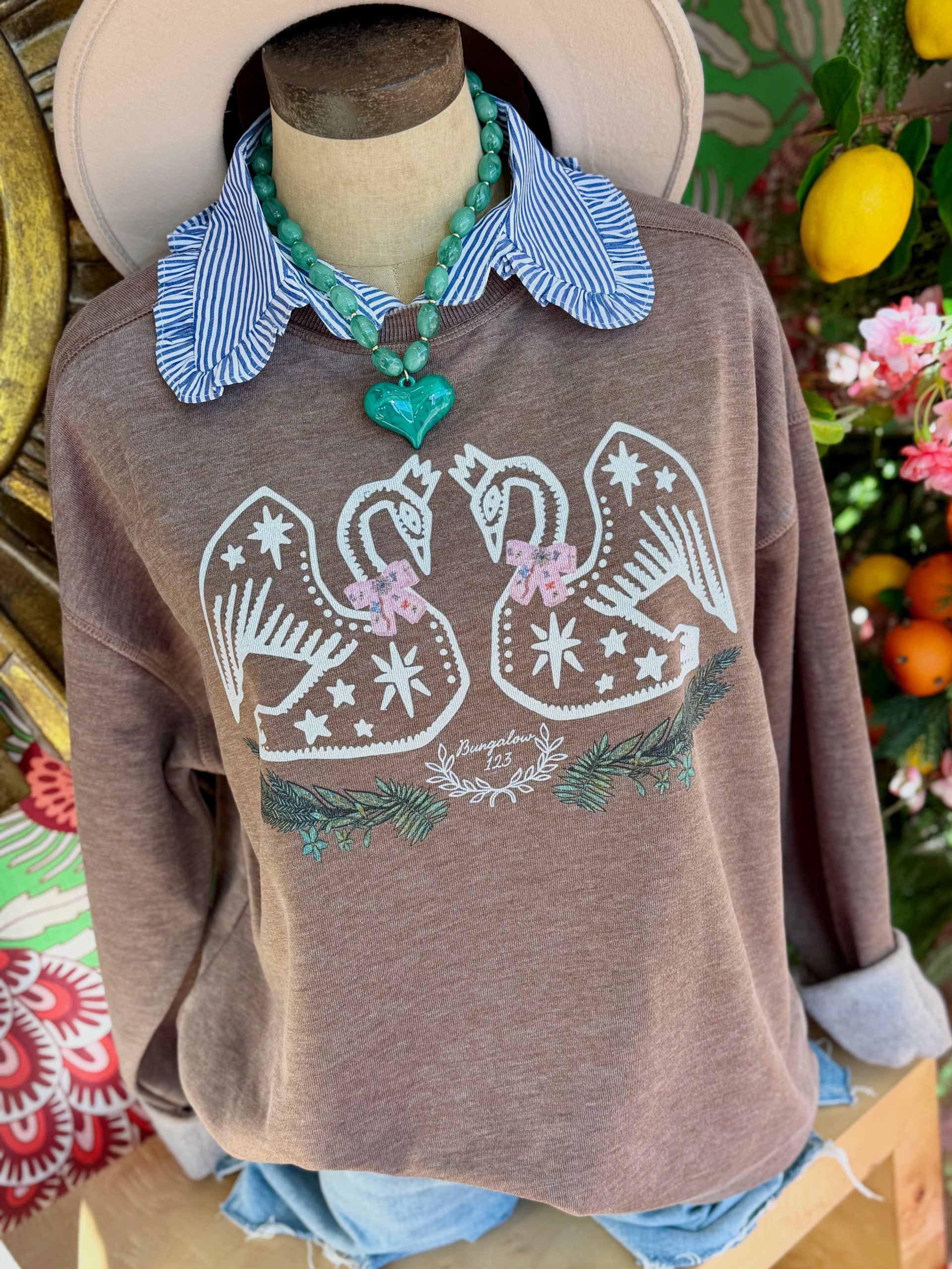 The softest, coziest fleece pullover ever, featuring our exclusive Swan Song graphic on the front. Luxuriously soft, unisex, oversized fleece sweatshirt with ribbed neckline, cuffs, and hem. Dropped shoulders and relaxed bottom high-low hemline. Burnout wash process provides a unique, washed and worn look and a comfortable feel. Fabric: 60% Cotton, 40% Polyester