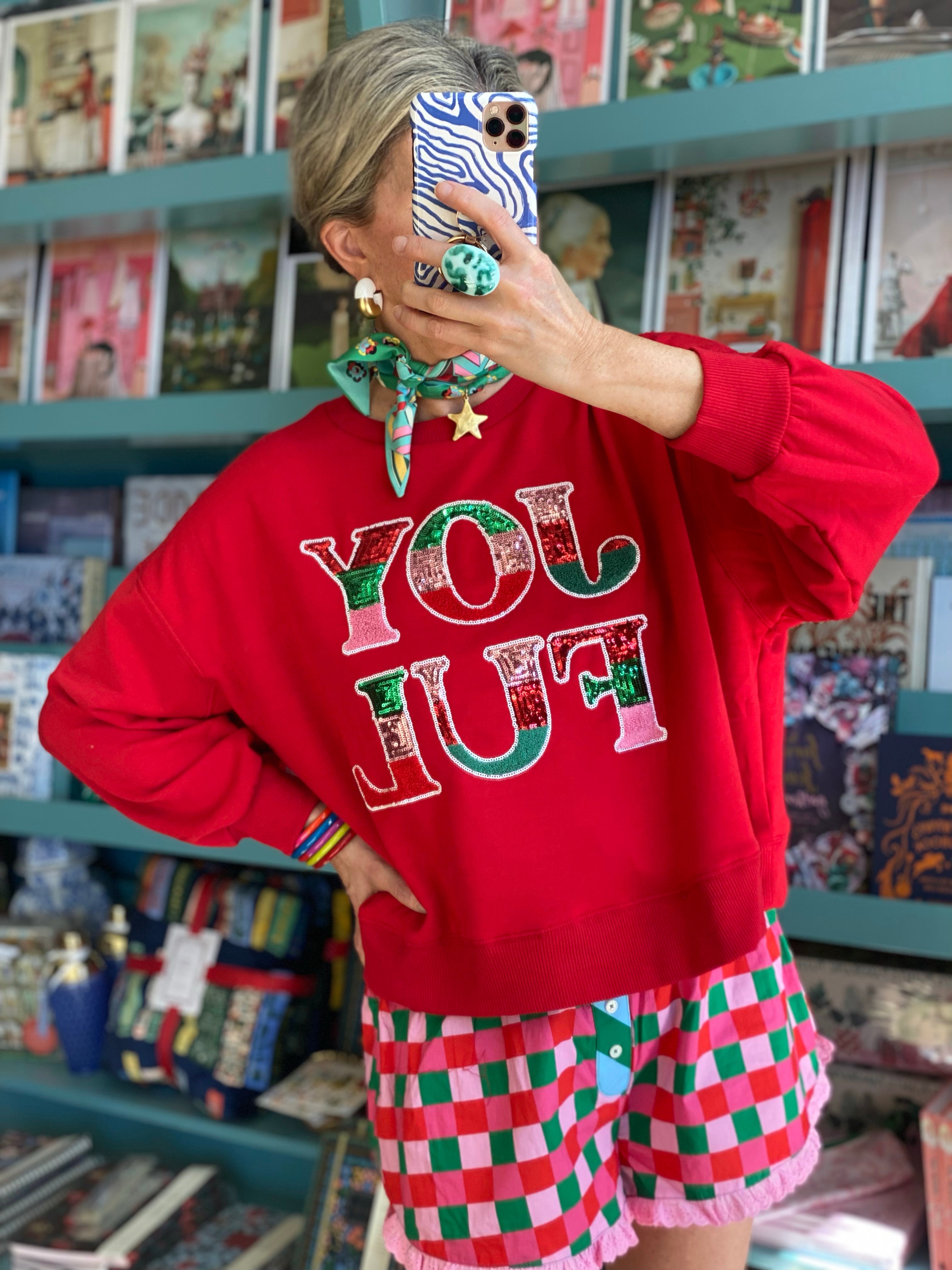 Spread holiday cheer with the best-selling Millie Sweatshirt. This festive piece is designed with a slightly cropped length and full-volume sleeves, combining playful elegance with contemporary flair. Perfect for celebrating the season in style, the Millie Sweatshirt offers a touch of sparkle and sophistication, making it a standout choice for holiday gatherings and cozy winter days.