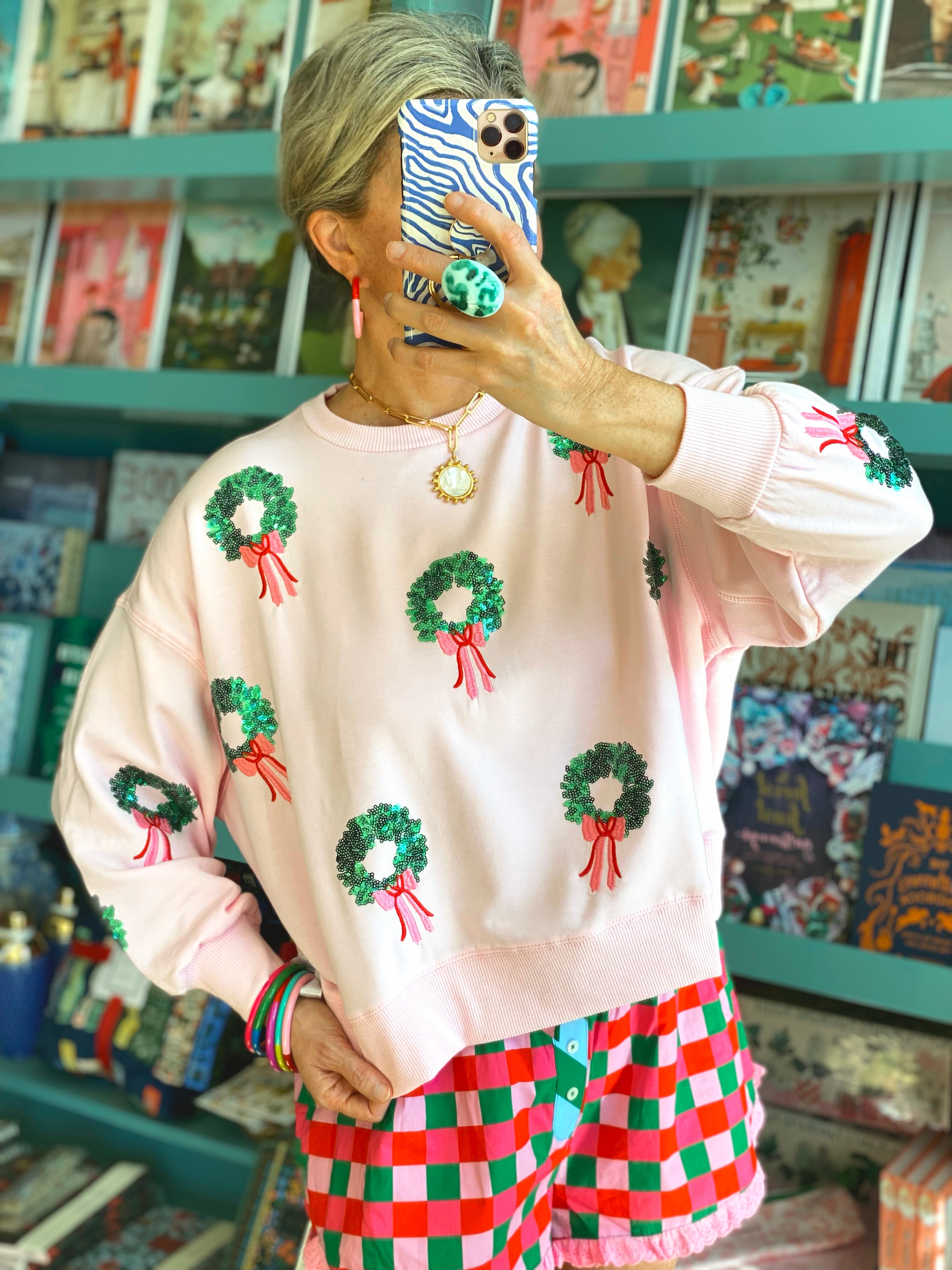 Spread holiday cheer with the best-selling Millie Sweatshirt. This festive piece is designed with a slightly cropped length and full-volume sleeves, combining playful elegance with contemporary flair. Perfect for celebrating the season in style, the Millie Sweatshirt offers a touch of sparkle and sophistication, making it a standout choice for holiday gatherings and cozy winter days.