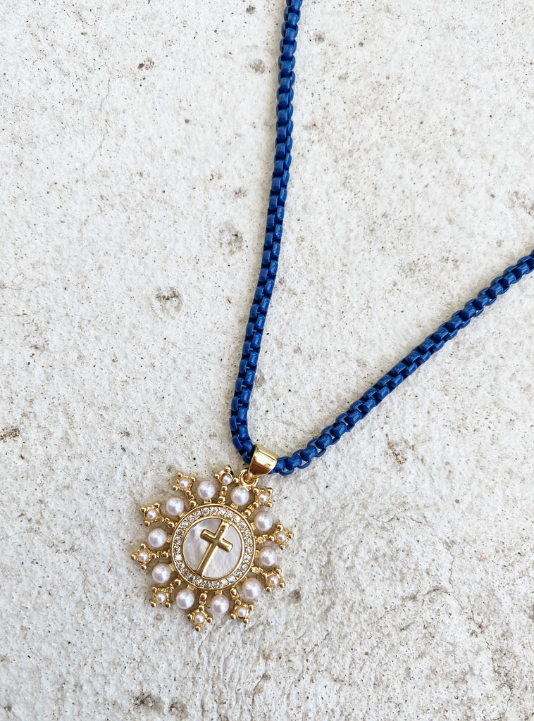 St. Benedict Cross Enamel Necklace - Deep Pink