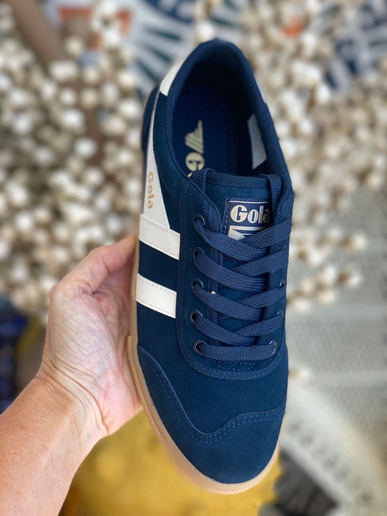Based on an original 1970s design, enjoy the new Gola Badminton Suede in a rich palette selected for AW25. This classic women’s sneaker is finished in a soft navy suede and complimented with off white details and a gum sole for the perfect blend of style and heritage.
