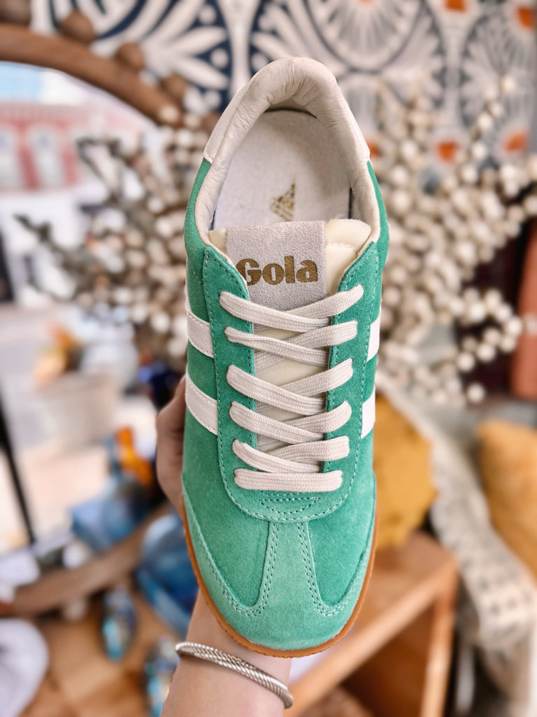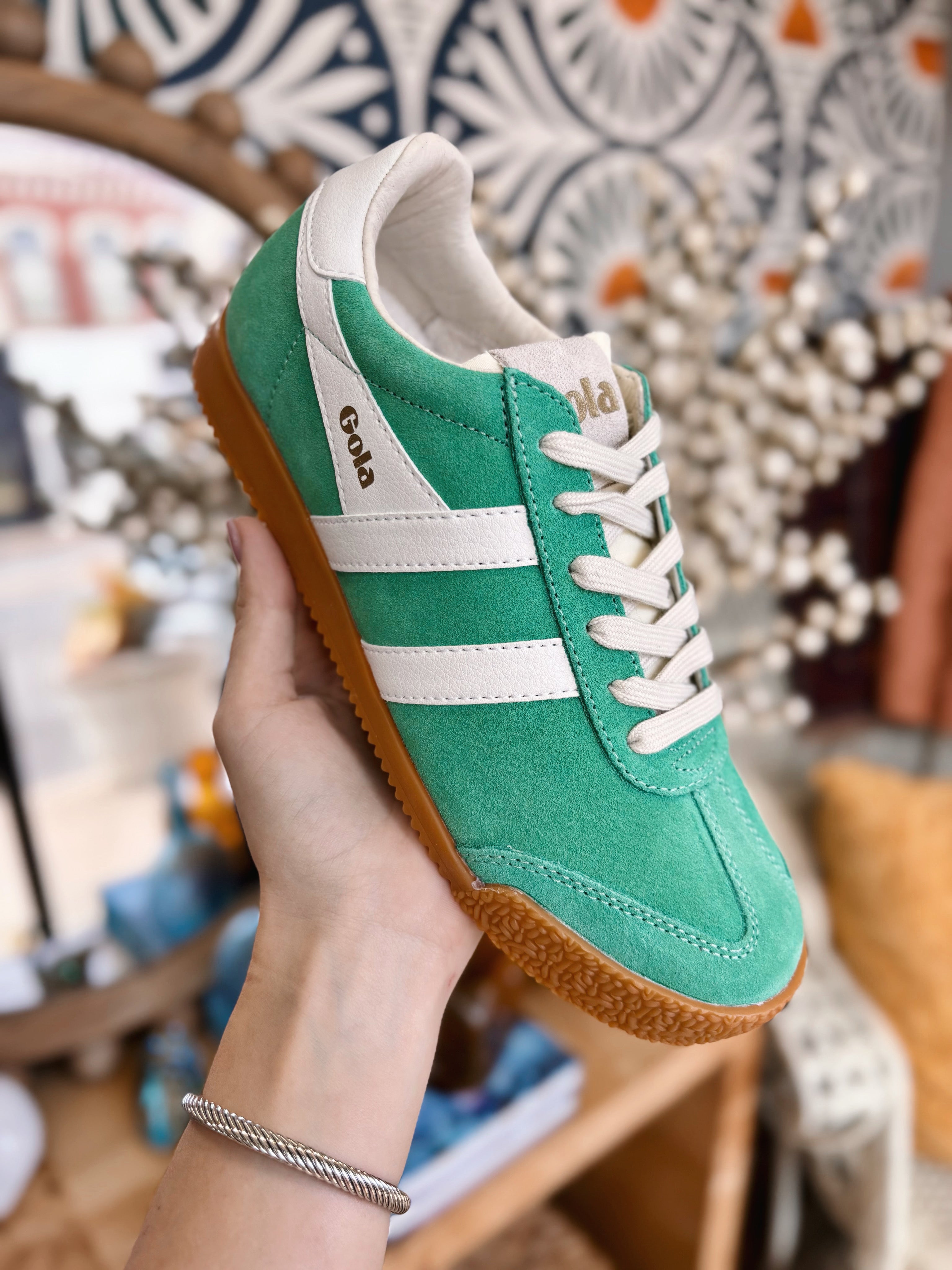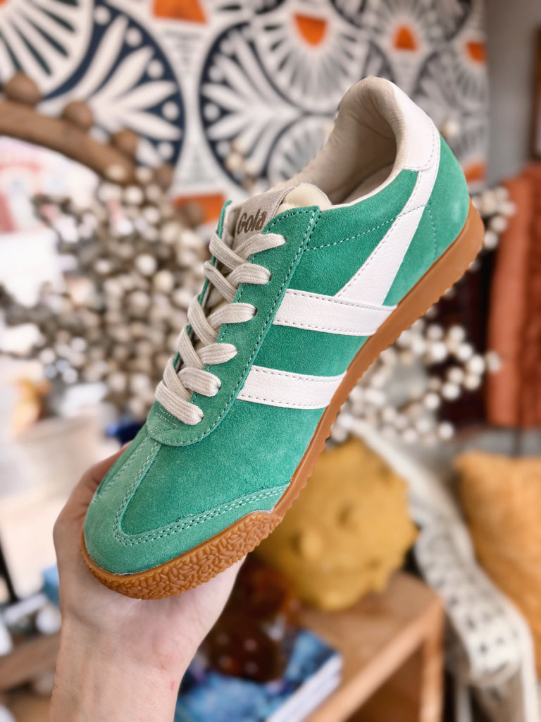 When it comes to heritage sports Gola has a tale to tell and Elan’s roots as a multi-purpose training shoe can authentically make this claim. An old school gum sole, in just the right vintage tone, is reminiscent of days in the school gym, whilst saturated colour combinations such as this jade green and white, give a thoroughly modern looking women’s sneaker. You’re not mistaken if you can see the resemblance to Gola’s flagship Harrier style, Elan is almost a twin but has an additional heel tab panel to give an extra colour pop. Selling out as quickly as we get them in, this is the hottest women’s Gola sneaker of the season.