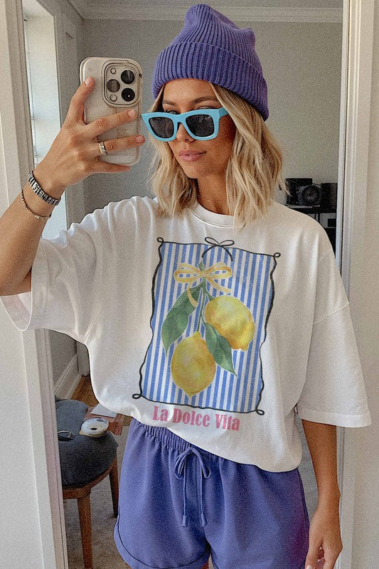 "La Dolce Vita" washed graphic tee in 100% Cotton. Oversized fit.